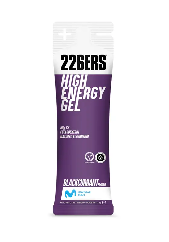 226ERS HIGH ENERGY GEL porzeczkowy – żel energetyczny z węglowodanami (50 g), cyklodekstryną, BCAA 8:1:1 i naturalnymi aromatami.