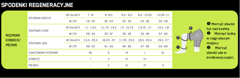 ROZMIAR: Spodnie dobieramy mierząc nogę w trzech miejscach - noga powinna być zgięta pod kątem 90°: