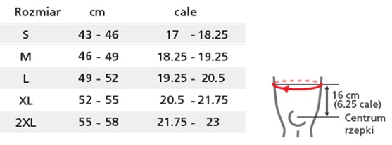 Zmierz obwód uda 16 cm powyżej środka rzepki. Jeśli wypada pomiędzy dwoma rozmiarami, wybierz większy.